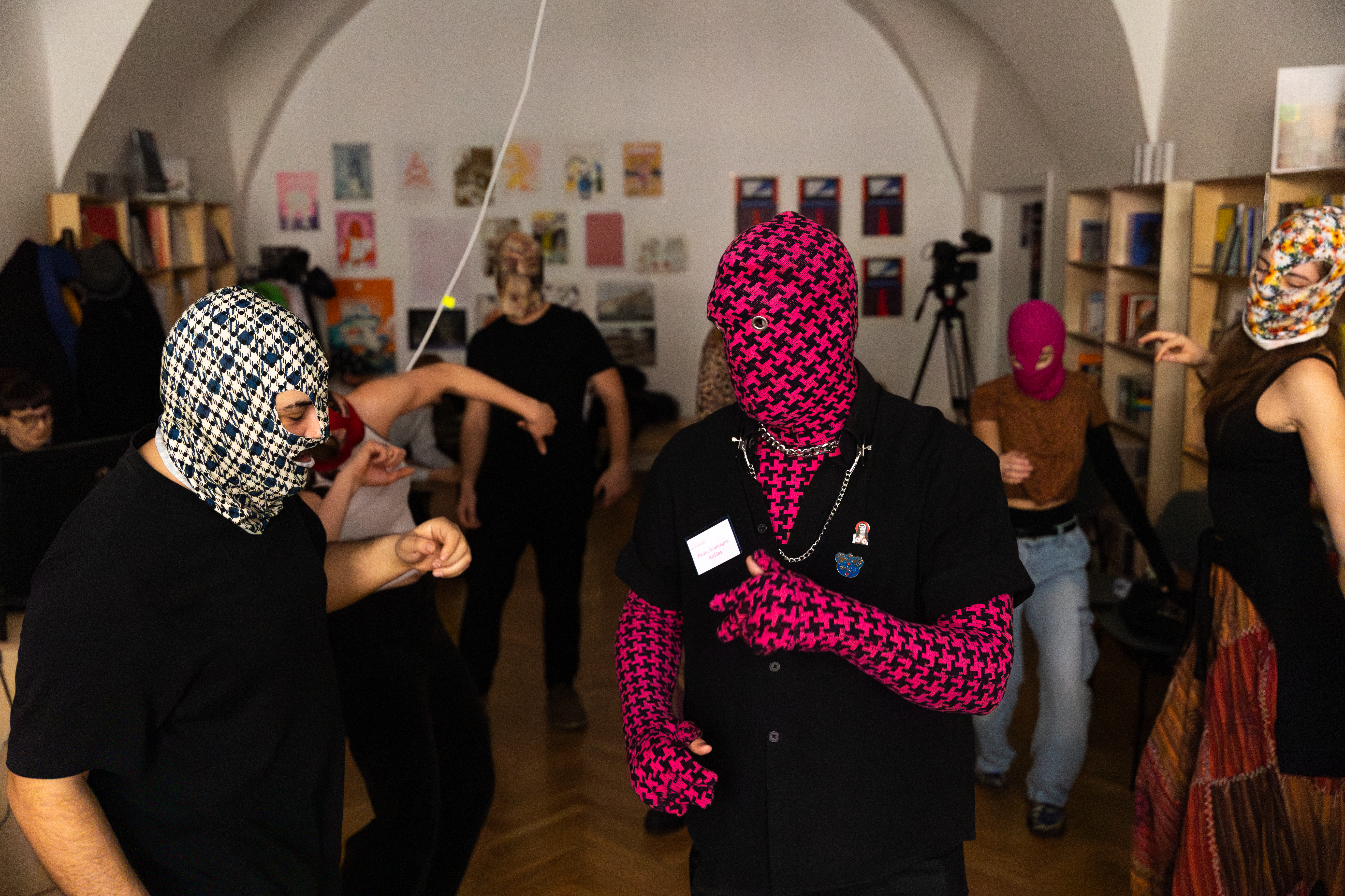 The lecture gradually dissolves into music. During the performance, the audience receives a mask and is invited to join a rave: to dance, to feel, to explore what it means to dissolve one’s identity and, for a moment, be part of a new anonymous community that dances, breathes, and sweats together in masks. To try on a new face and discover that queering is not just resistance…it is movement, it is music!
