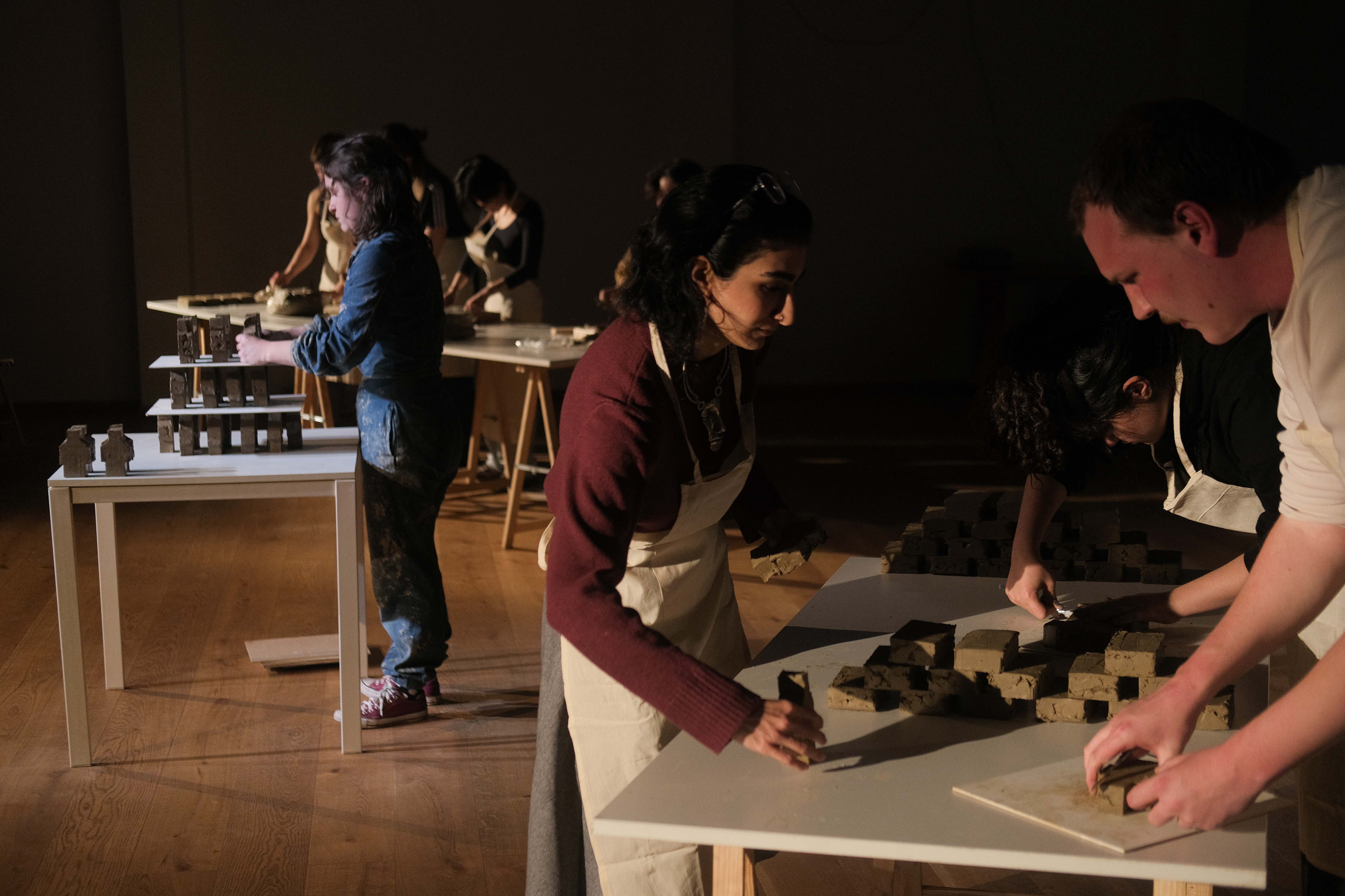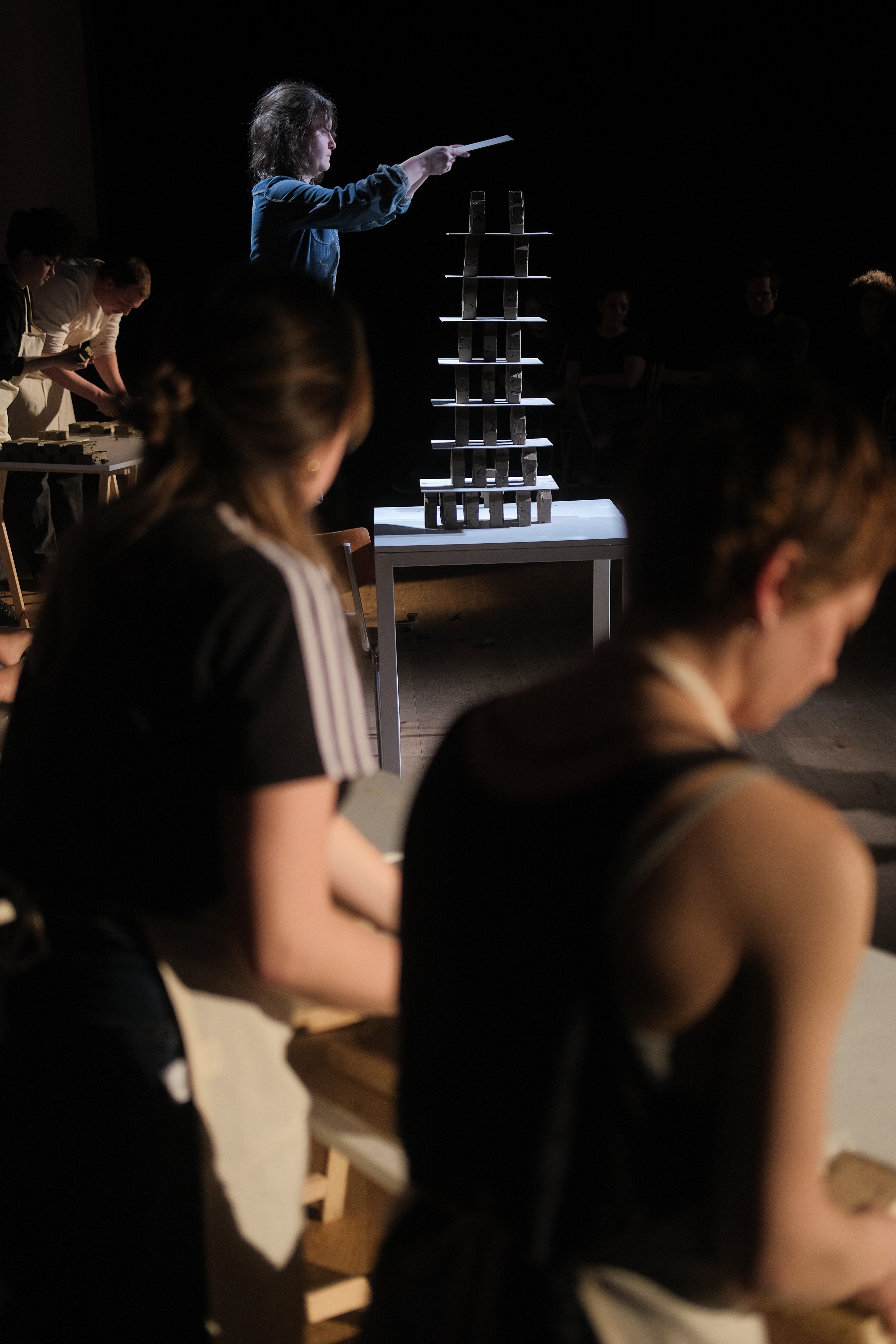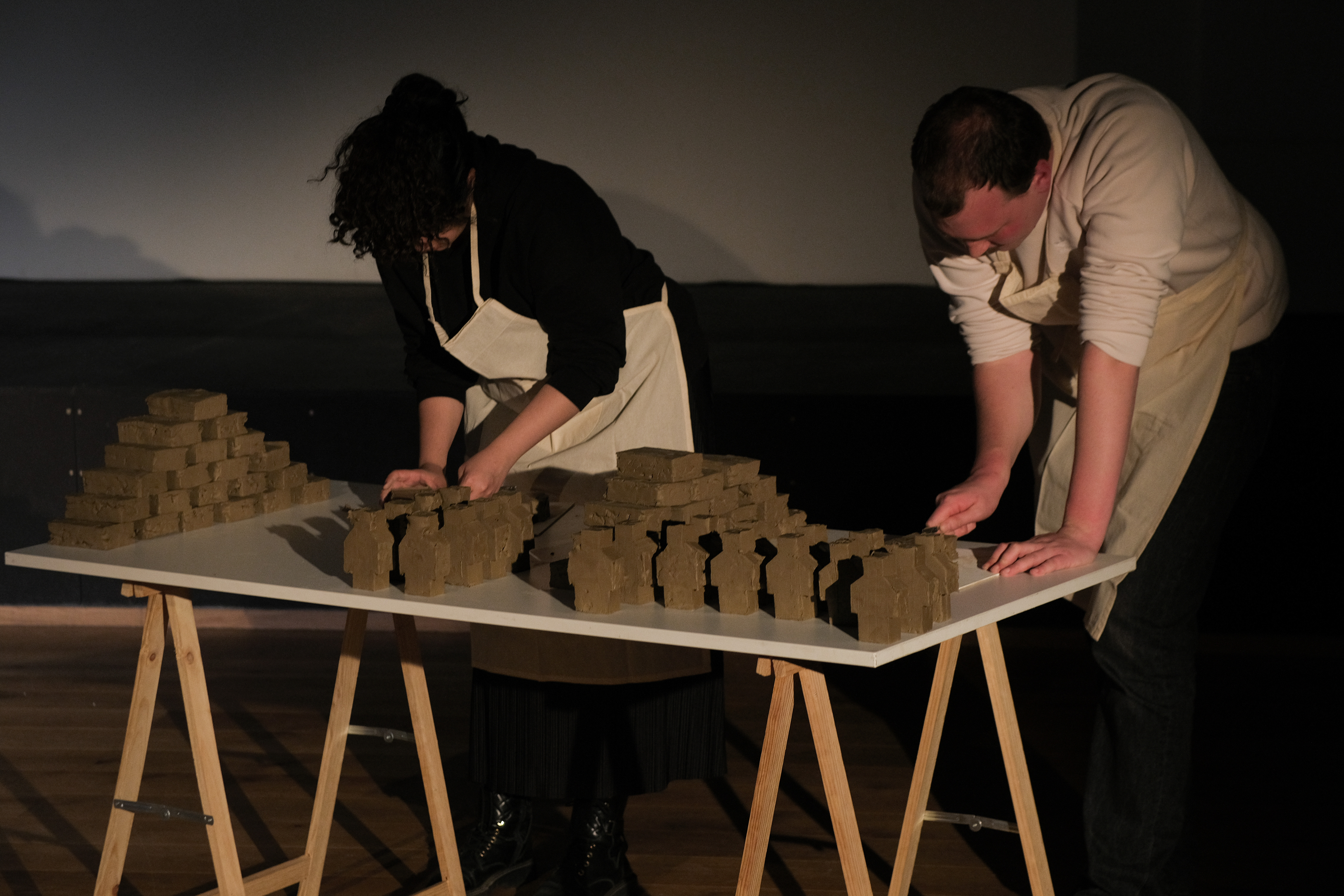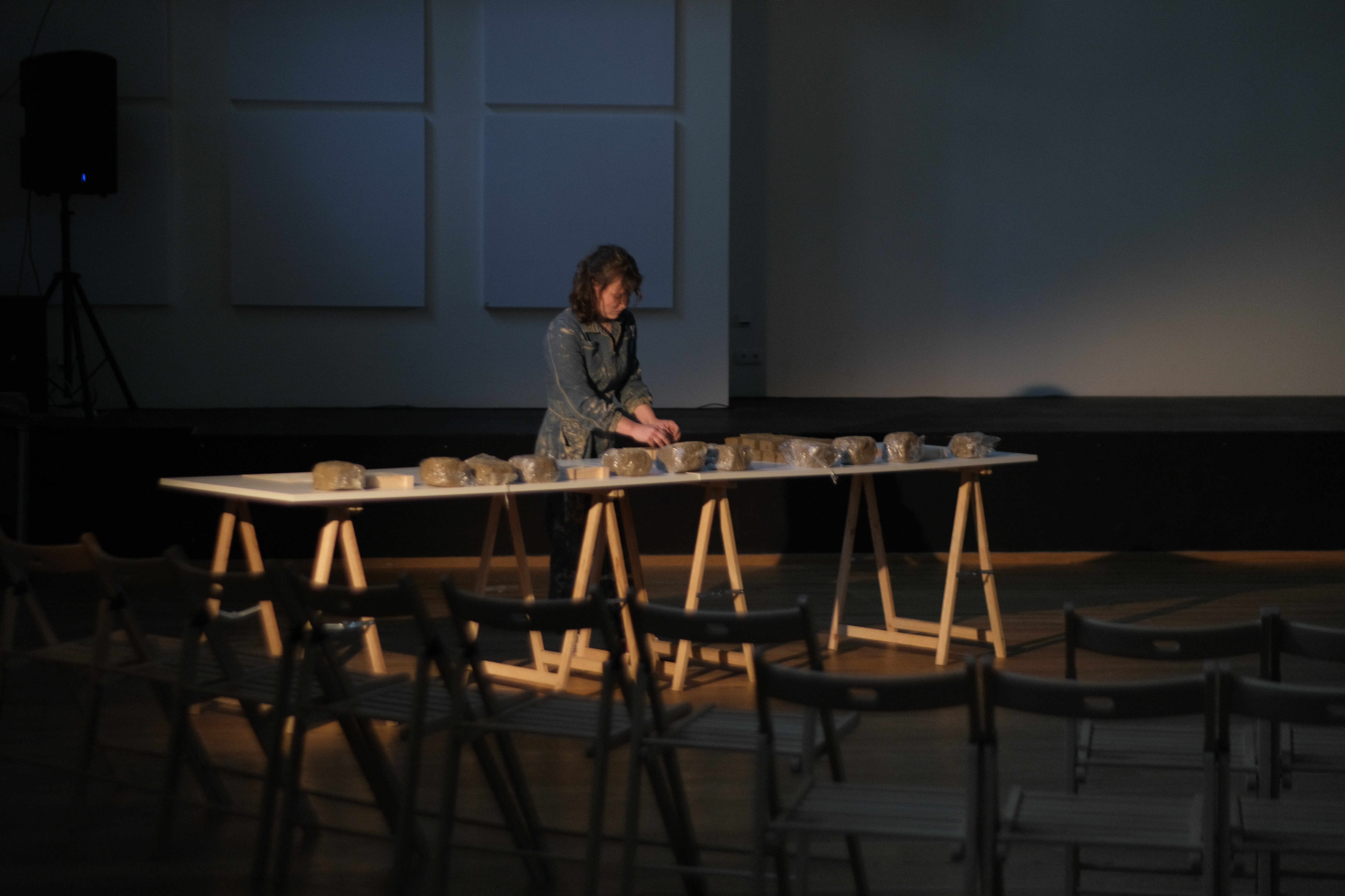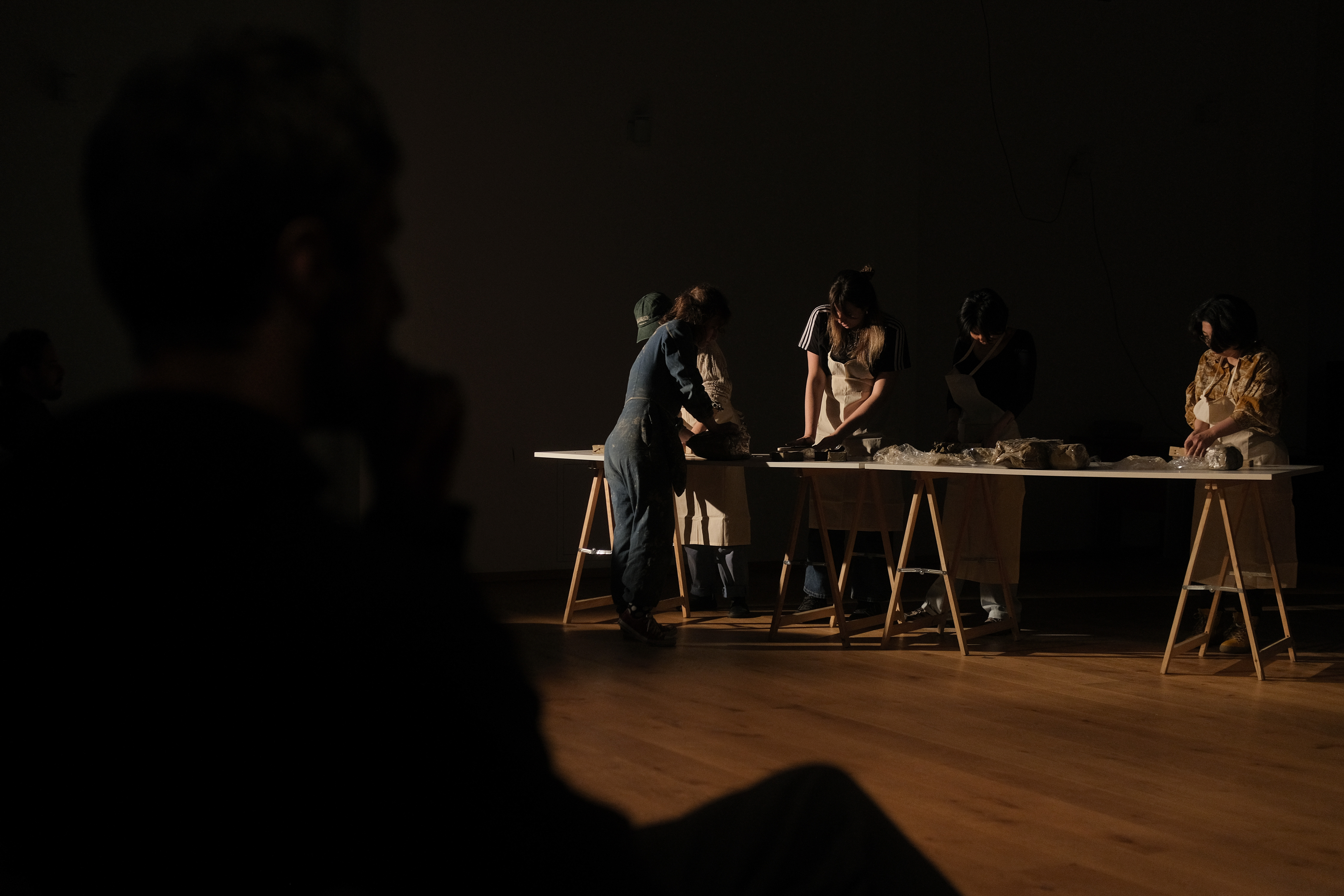 In this participatory performance disguised as a workshop, The so-called ‘’Dream Factory’’ invites the audience into a moment of community building through the manipulation of clay. The individual presence dissolves into shared labor and repetition, blurring the boundary between wakefulness and sleep, shaping a temporary community.