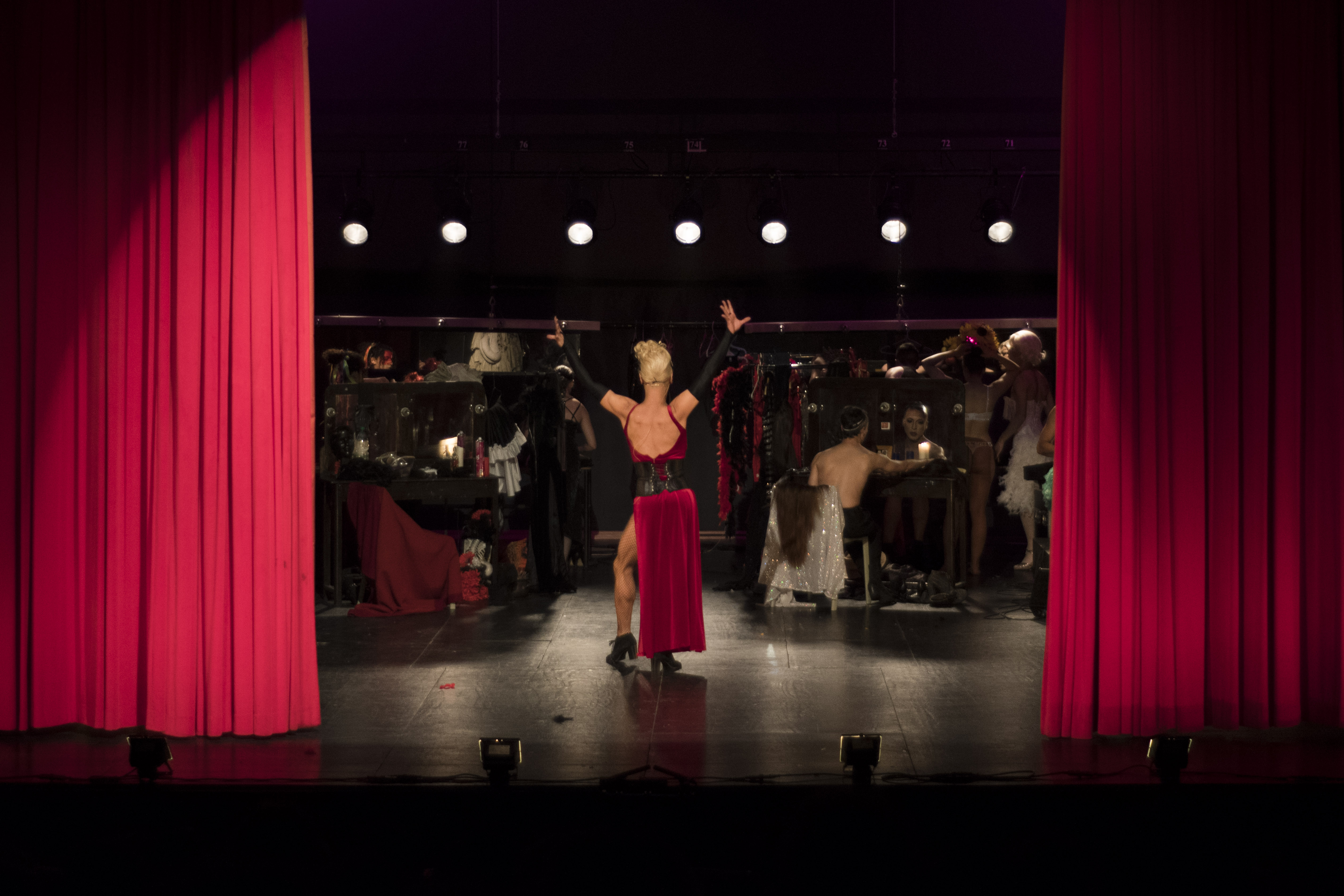 Cabaret Travesía Travesti is a multimodal theatrical experience that blends theater, dance, performance, music, lighting, and design. The various actions unfold within a travesti cabaret, showcasing both what happens behind the scenes in the dressing rooms and the different acts presented on stage.